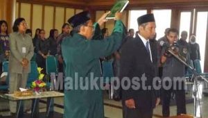 Pelantikan Abdullah Ely digelar di Ambon, Jumat (17/4) dan dilakukan oleh Endang Windating Tyas Wakil ketua Bawaslu Republik Indonesia.