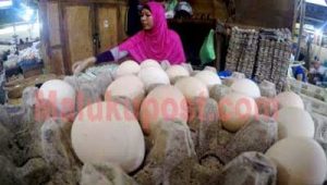 Rosmina, pedagang yang ditemui di pasar Mardika mengatakan harga telur ayam ras sudah naik di tingkat distributor sejak hari kemarin mengakibatkan di pasar juga ikut bergerak naik.