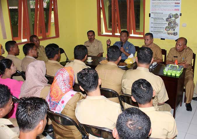“Kita akan menahan pangkat bagi para pegawai yang malas kerja dan kita akan berikan penghargaan kepada pegawai yang rajin bekerja dan berdisiplin,” tegasnya.