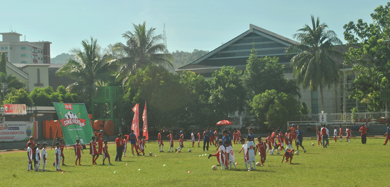Di Ambon, program pelatihan berlangsung di Lapangan Merdeka, Sabtu (1/10) dan Minggu (2/10), yang diikuti 128 anak dari masyarakat setempat yang memiliki ketertarikan akan sepak bola.