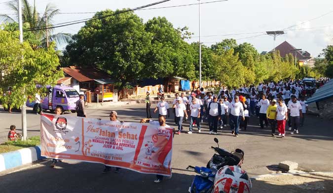 Tual, Malukupost.com – Komisi Pemilihan Umum (KPU) Kota Tual menggelar jalan santai sadar Pemilihan Kepala Daerah (Pilkada) serentak tahun 2018.
