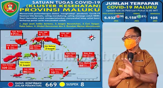 “Dengan penambahan ini maka total pasien dinyatakan sembuh di Maluku kini mencapai 6158 orang (kasus), dari total konfirmasi 6932 kasus,”ujar Ketua Pelaksana Harian Satuan Tugas Penanganan Covid-19 Provinsi Maluku, Kasrul Selang, dalam release, rabu (24/02/2021).