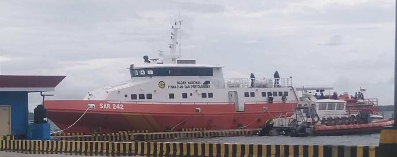 Kapal Basarnas Cabang Tual. Rusdianto Muhamad yang dihubungi melalui telepon selulurnya Senin, (21/2/2022) mengungkapkan, Kapal KN Bharata Basarnas yang disiapkan untuk proses evakuasi korban mengalami penundaan akibat cuaca buruk.