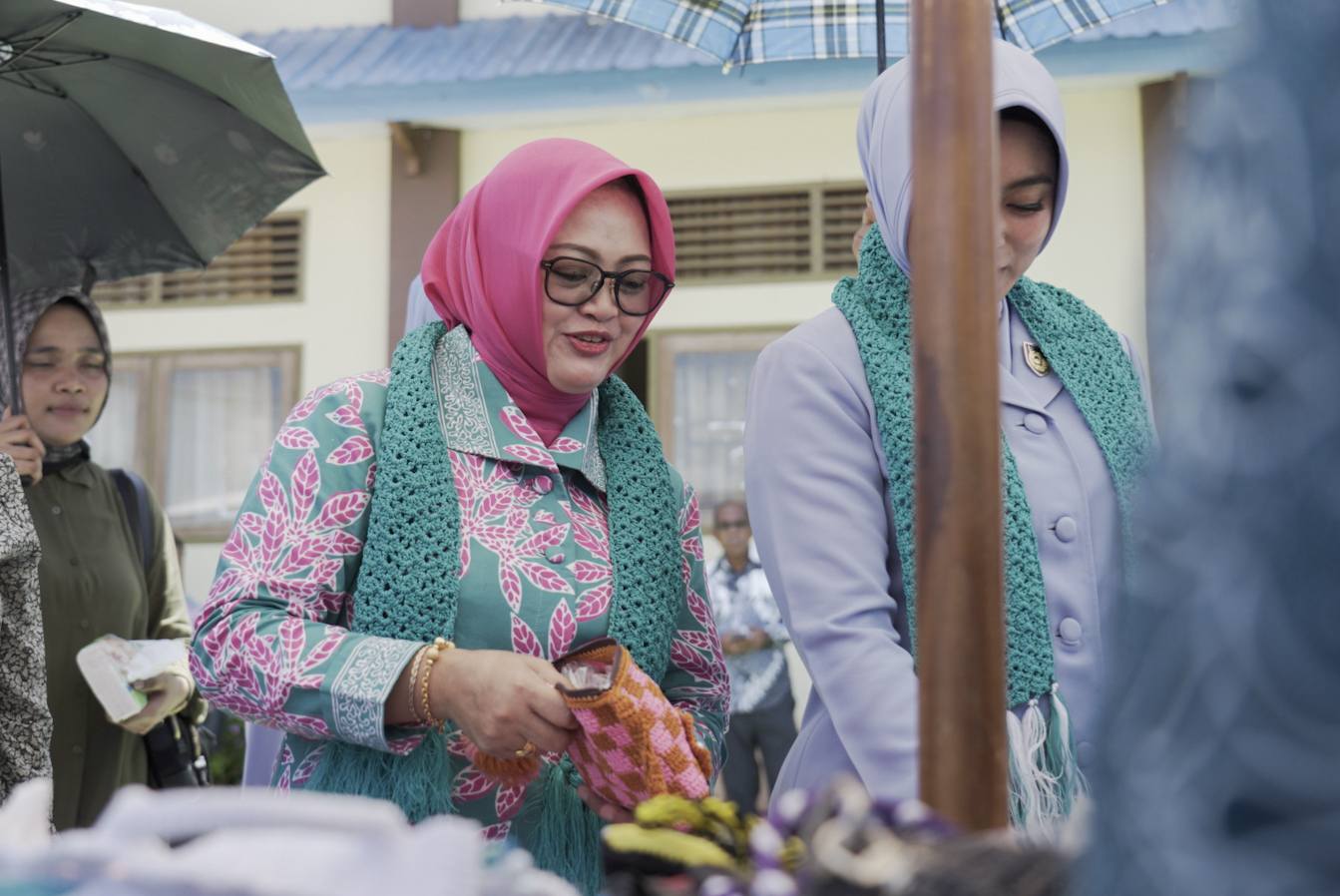Saat mengunjungi lokasi pameran yang berada di halaman Balai Ohoi Langgur itu, Siti Halima Jasmono didampingi Ketua TP PKK Kecamatan Kei Kecil, Frasisca Dumatubun.