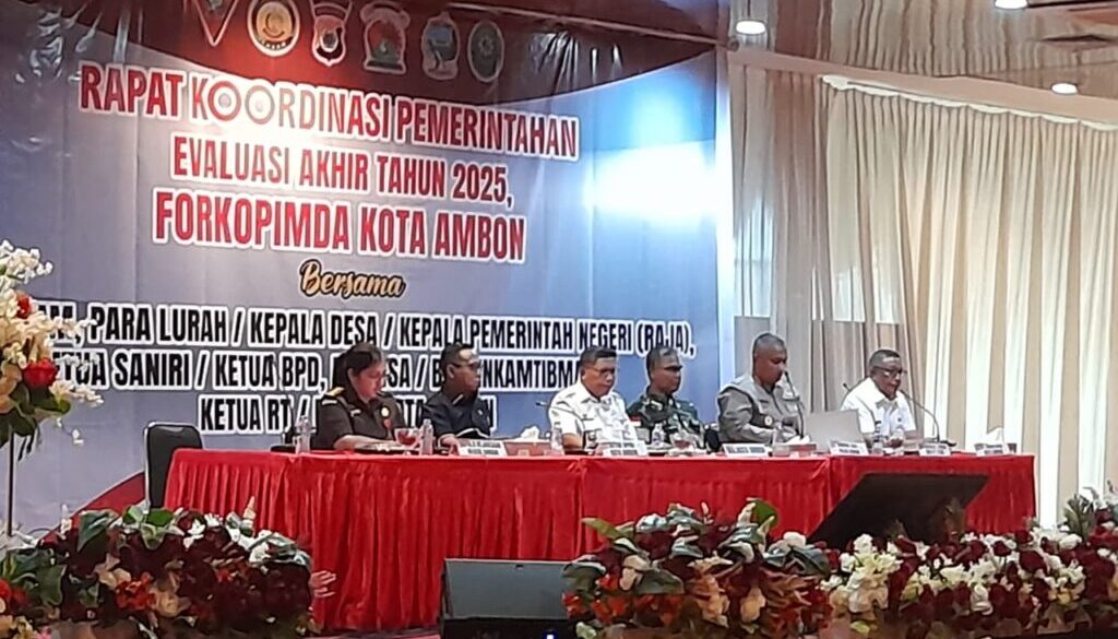 Penegasan itu disampaikan dalam Rapat Koordinasi Evaluasi Tahun 2025 yang digelar Pemerintah Kota Ambon bersama Forum Koordinasi Pimpinan Daerah (Forkopimda) di Maluku City Mall, Rabu, 17 Desember 2025.